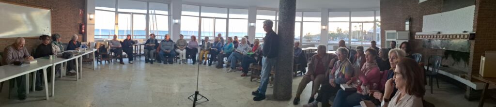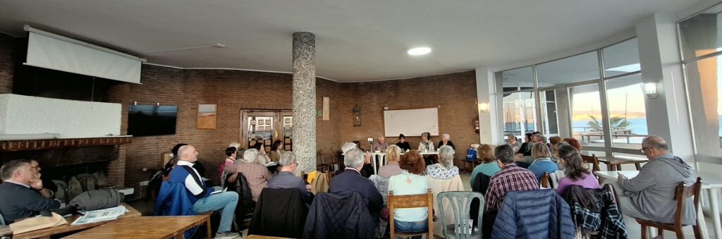 Hoy, en el del Club Náutico, que nos abre el corazón de levante a poniente, donde el atardecer se hace más grande porque es compartido, tendremos el primer encuentro con el autor de este año. En esta primera estación de nuestro viaje, algunos esperan sentados tranquilamente, otros se saludan como viejos viajeros de libros e historias. La autora firma los últimos ejemplares a laespera de que el revisor anuncie la salida.