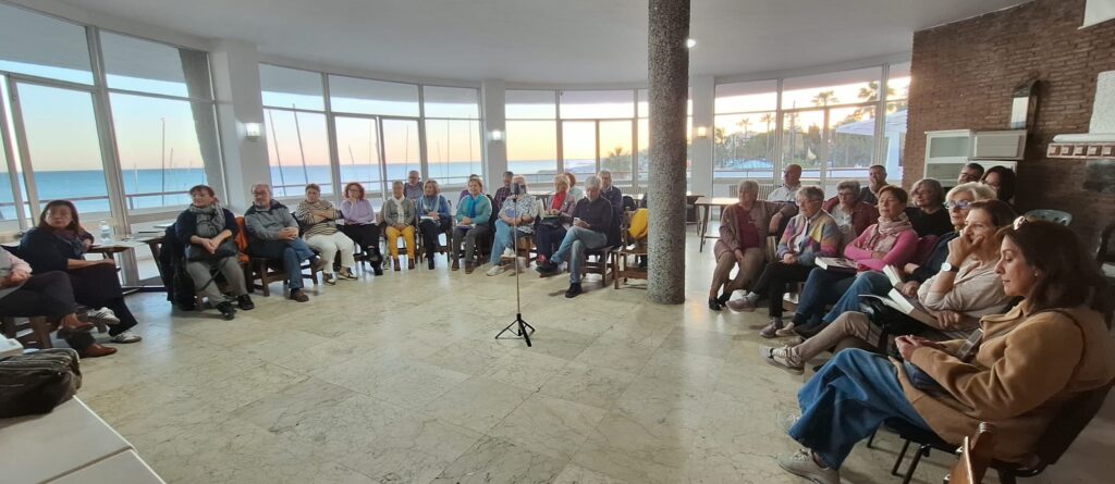“Tengo la certeza de que todo va ir bien”. Es lo primero que se me viene a la mente después de leer el libro de este mes. Estoy tranquila, serena. El tren sale a las seis treinta, con destino a Madrid. Nos embarcamos con Carmen y Aurelia para conocer su historia familiar. Algunos estamos ojerosos, ensimismados, llenos de emoción y todavía resacosos por la magnífica presentación del libro “La niña del acerico” de Celia Herrero Medina, que tuvo lugar la tarde anterior en el Palacio de Beniel. Un duelo de admiración, alabanza, gratitud, esperanza… entre la escritora y nuestra compañera Jose Justicia. La escritora por estar allí, y compartir con todos nosotros esa experiencia y por ese pico de curiosidad de querer conocer qué piensan y sienten los que han leído el libro. Jose con su manera saltarina, entusiasta, gustosa y emotiva nos lo fue descubriendo y desgranando, sin desvelar nada de la historia por respeto a aquellos que aún no lo habían leído. El público entregado por lo ya dicho y por la emoción de tener entre nosotros a Aurelia y Paco, dos de los protagonistas de esta historia (algunas lloraron de la emoción).