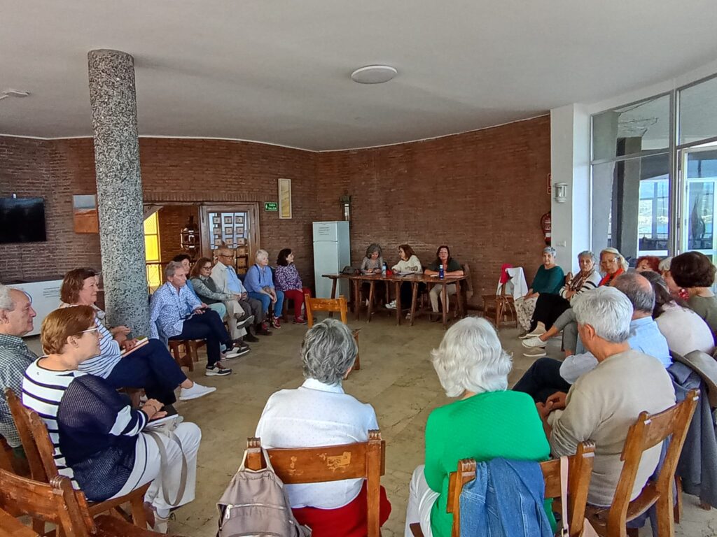 Son las 18:30 de la tarde. La luz que entra por los grandes ventanales de la sala ilumina con una claridad azul los rostros expectantes de los asistentes al club de lectura. Forman un gran círculo que llena la estancia; todos, sentados en sus sillas, muestran en sus gestos y movimientos una impaciencia contenida, un deseo urgente de comenzar las intervenciones.